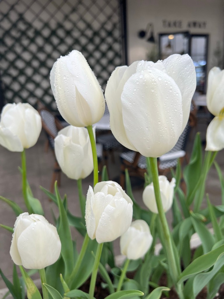 The courtyard was lovely; it was lined with blooming pink and white tulips and the air smelled of a mixture of a variety of all the food trucks. The courtyard has corn hole boards and a variety of other yard games for families.