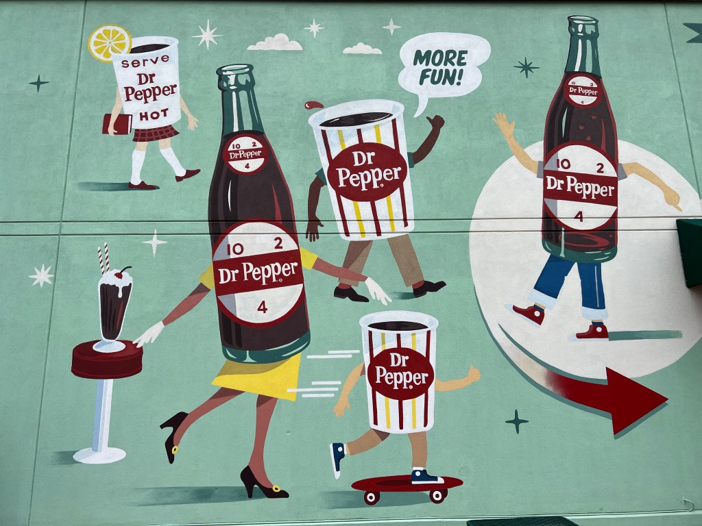 After leaving the Silos we walked down the street to the Dr. Pepper Museum. I think the walk was maybe a half mile long. We got right in, and the museum had everything you needed and didn’t need to know about Dr. Pepper and how sodas became popular in America. Baby J was not interested in the museum at all and decided it was time for a nap, so I only saw a short part of the museum because I sat in the corner with him while he napped, while Nathan and Becky walked around. I will take baby cuddles over old Dr. Pepper advertisements any day. The best part of the museum was getting a free Dr. Pepper at the end of the tour, as it is my favorite soda.