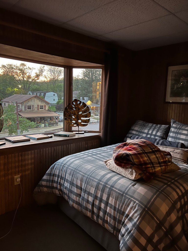 My mother-in-law planned a fun get-a-way weekend for my sister-in law’s birthday. We headed to Nashville, Indiana. Nashville is a fun busy little town in between Indianapolis and Bloomington. Nashville, Indiana is known for it’s historical sites, food, hiking, shopping and winery/distillery. She booked an Airbnb in the middle of town. Our Airbnb was directly in front of the Pioneer Museum which made for a quiet Airbnb at night since it was closed at night and we were surrounded by trees.