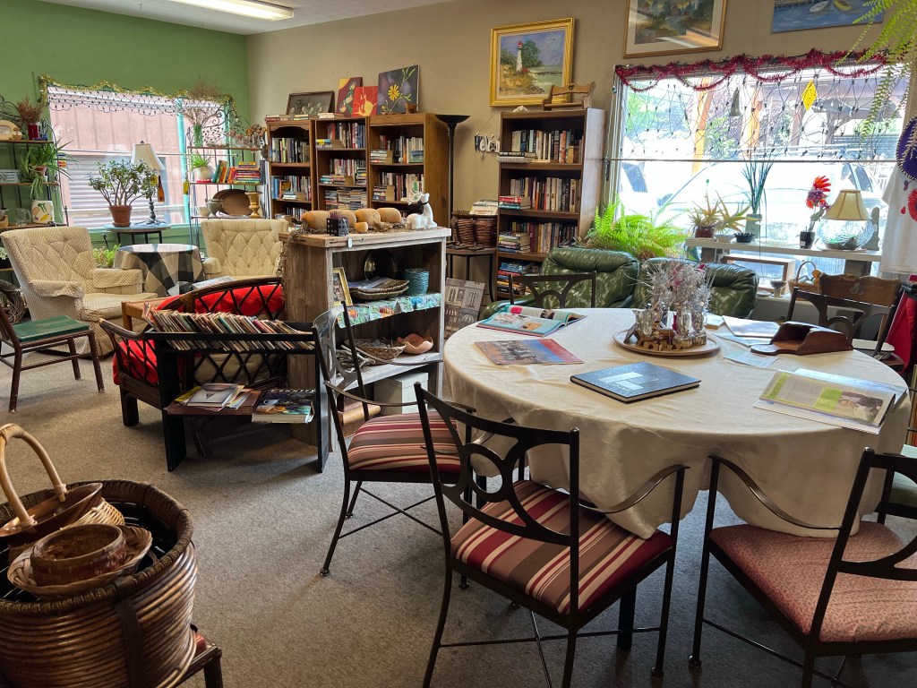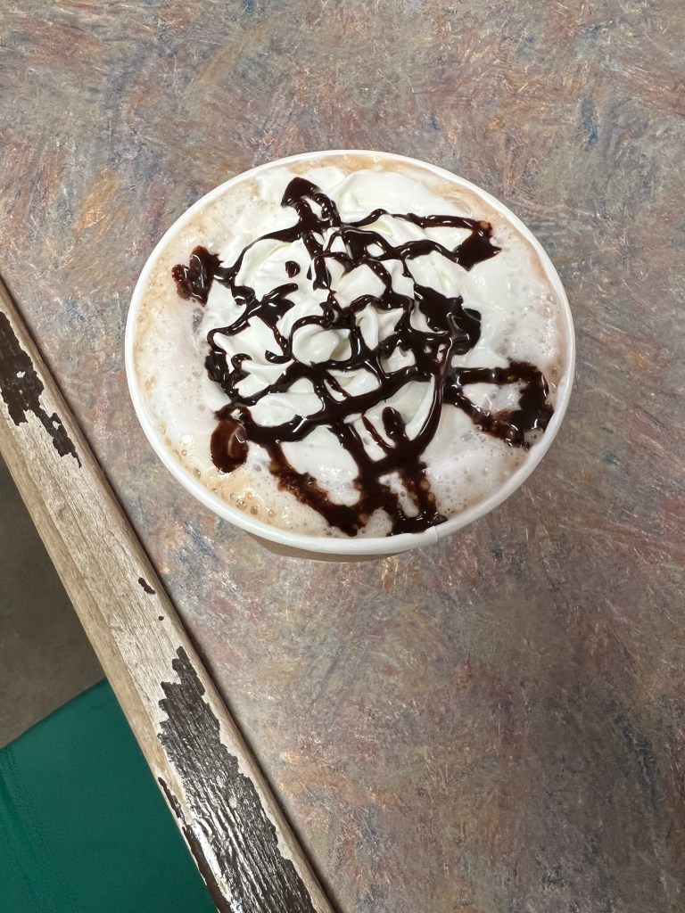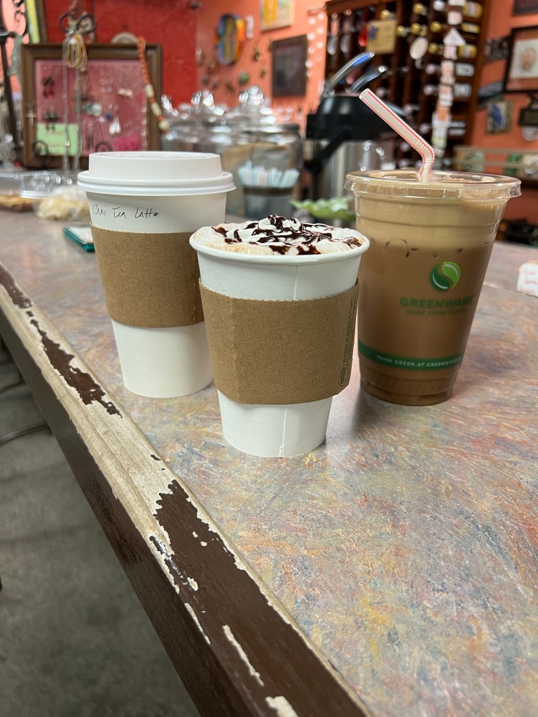 The next morning we all overslept so bad. Or possibly I just overslept. I had every intention of waking up early again and going for a run. I rolled over and looked at my phone and it said 10:16. We had to be checked out by 11:00. A few of us got ready and went to grab coffee quickly. We didn’t have time to go get breakfast before we left. We walked into Common Grounds coffee shop. This shop was interesting. I was not sure where to even start with it. It somewhat looked like a thrift shop. It also could have passed for an elderly ladies living room that was a hoarder. I think at best it was a failed attempt to look like surrealist art. I found a hot pink shoe sitting by itself on a ledge. They also had books there to read while you drank your coffee. I found a large picture book of chickens that really caught my eye. What was even funnier than the pictures in the book was the small sticker in the corner that said not for sale. I wondered how many people tried to buy the book before they felt the need to put a sticker on it. The coffee was good but the location of it left a lasting impression I won’t forget.