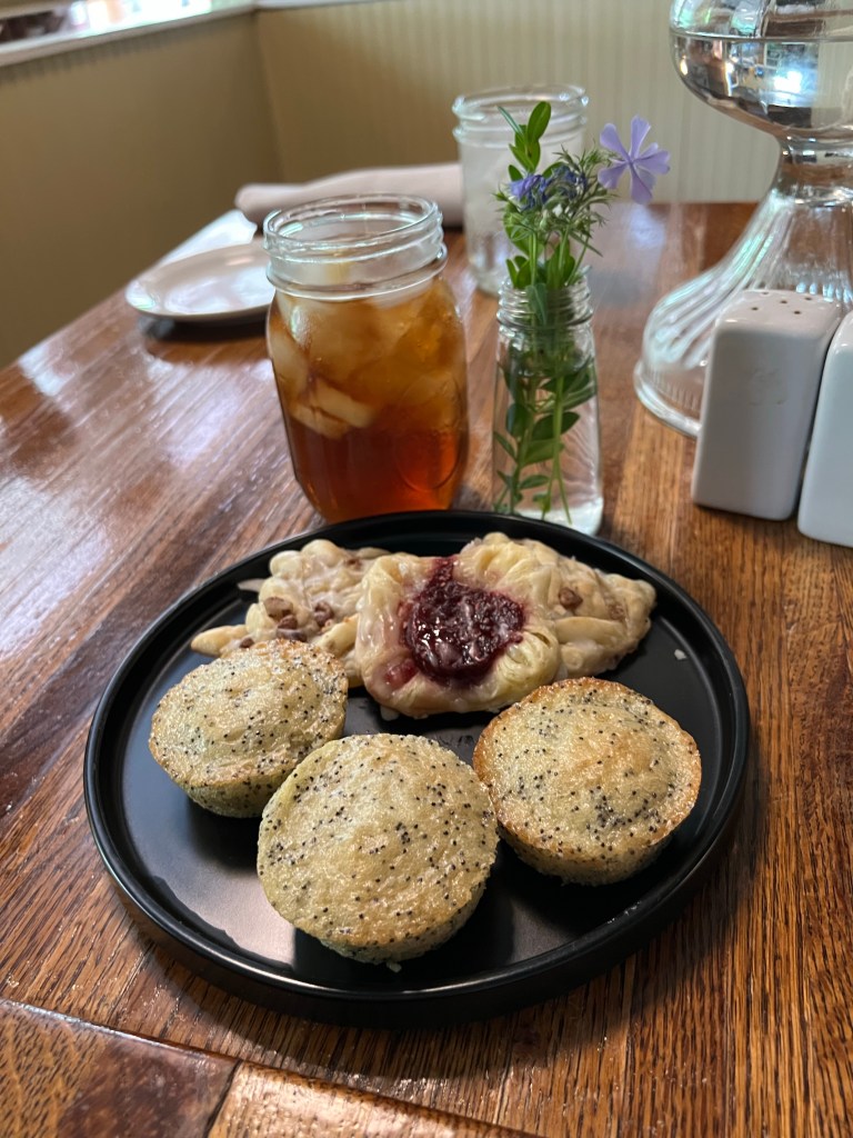 After packing up and leaving we stopped at the small town of Story, Indiana. This town is absolutely adorable. The town was just a normal small town until The Great Depression and was left almost vacant for years. Now one family owns the small town and it is run as an Inn, restaurant, and venue. Many motorcyclists stop here overnight on trips while traveling the backroads. This place is also popular for weddings or just fun weekend getaways. Many ride their horses over from Brown County State Park for a great meal. If you are from the Midwest and see the outside of the building you think you know what to expect before you walk in. The outside of the main general store looks just like all the others in small town America because they are all the same. You walk in and they have a few table with mix matched chairs, the room is hazy with smoke from the grill and you are guaranteed to have the greasiest burger or biggest deep fried tenderloin of your life. Inside you will find 3-5 old men sitting with their cup of coffee talking about the good ol’ days. Story has this feel from the outside but when you walk in the restaurant it every different. The food is absolutely top of the line. You might find the old men but you will not find a greasy burger. To quote the menu you will find, “Crab stuffed morel mushrooms or fennel root with beet root butter and wasabi crème fraiche.” I also overheard the waiter say sometimes that have special candlelight dinners and a 6 course meal. What you have at Story is small town feel and small town hospitality with five star dining. Needless to say our brunch was delicious. We had the Sunday brunch special so it will not be on the regular menu but if I could get it again I would. I had eggs, sausage, bacon, potatoes, grits and fruit! The meal also came with complimentary pastries for the table. Everything was savory and satisfying. I will definitely be back at some point. In addition to this restaurant they have a tavern out back where they serve alcohol, smoked brisket, and have live music. The owner said there are 14 overnight arrangements. They have tiny houses to rent, or rooms. He gave us the keys to one of the houses that were not being used to go take a peek while we waited for our table. This particular house also had a hot tub and hammock. After our lovely brunch we took all the small, winding Indiana roads back home.